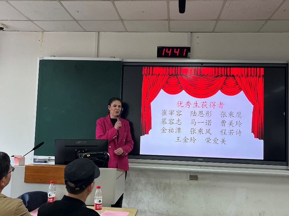 接着是为2023秋季学期成绩优异的学生颁奖。王建军教授宣读表扬生获得者名单、颁发获奖证书并合影留念,赵曜院长宣读优秀生获得者名单、颁发获奖证书并合影留念。