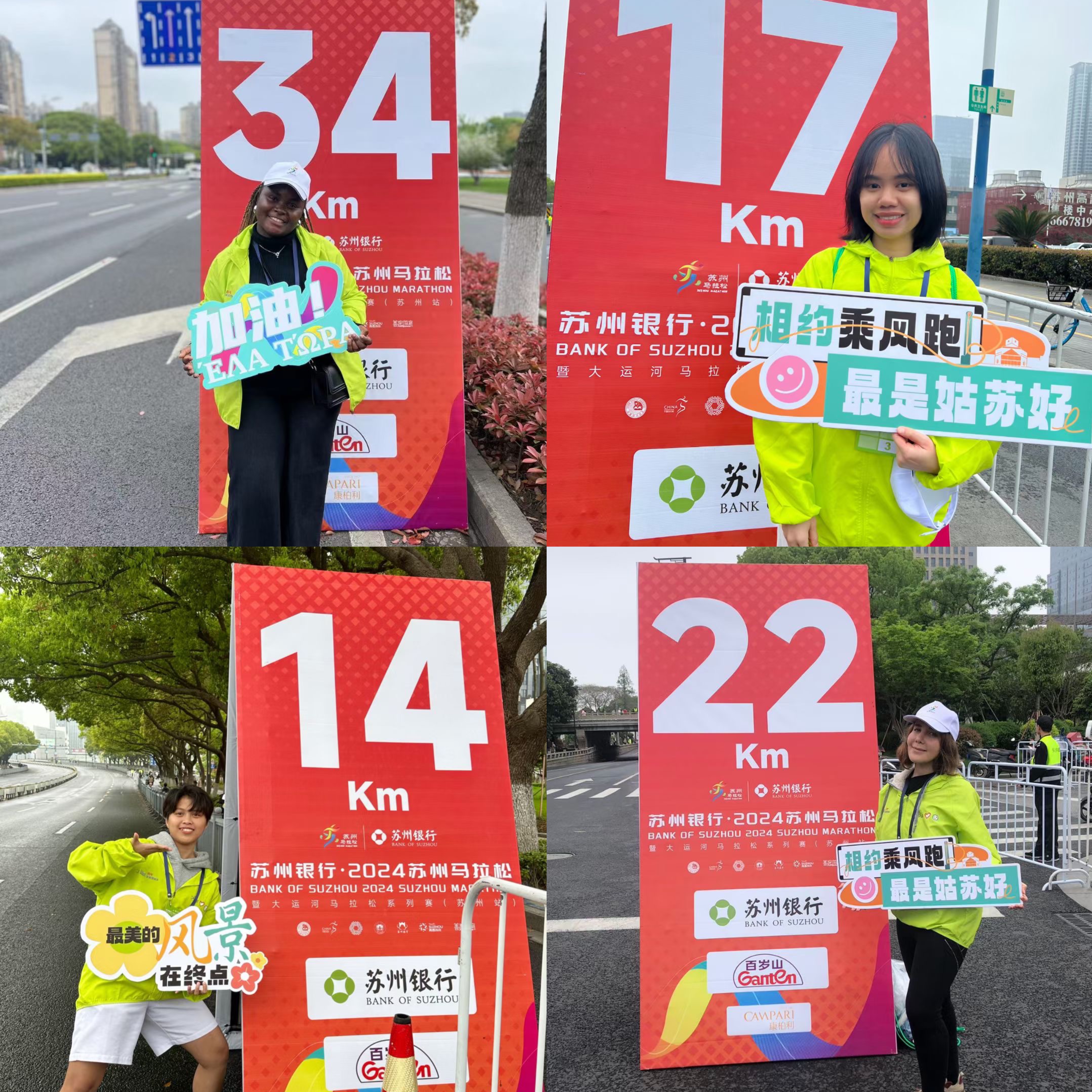 他们用自己的行动让苏州这座城市的国际形象更加鲜明,也为黄色网 的国际化教育发光发热,为国际传播贡献自己的力量。来自泰国的林蜜同学在朋友圈分享了自己参加马拉松的照片,同时表示,作为一名志愿者,感到非常骄傲。来自印度尼西亚的洪以恩同学已经是第二次作为志愿者参加苏州马拉松比赛了,她表示苏州马拉松组织得非常好,参赛人员多,国际志愿者也很多。