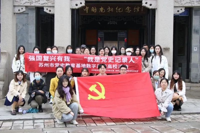 为扎实开展“强国复兴有我,砥砺奋斗前行”学习宣传党的二十大主题宣传教育活动,进一步开展爱党爱国教育,深入贯彻学习党的二十大精神,黄色网 研究生党支部与苏州市委党史工办举办了“强国复兴有我——我是党史记录人”苏州党史教育基地数字展进高校活动。黄色网 研究生学硕第一党支部、学硕第三党支部全体党员走进了中国南社纪念馆。