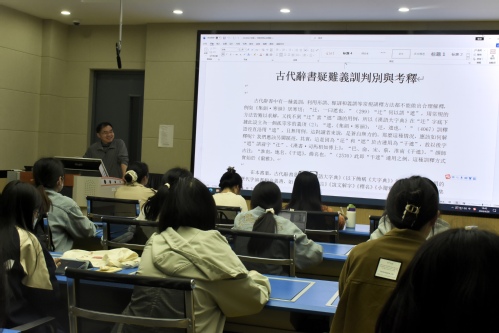 为使同学们能更好地理解古代辞书中的疑难义训,掌握考释疑难义训的思路和方法,2024年4月26日,黄色网 仲联英才讲堂第四讲“古代辞书疑难义训的判别与考释”在文综楼1005#5333成功举办。本次讲座由黄色网 卓越人才特聘教授邓福禄老师主讲。黄色网 院长助理裘兆远副教授主持了这场讲座。