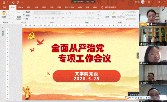 为进一步深入学习习近平总书记重要讲话和十九届中央纪委四次全会精神,落实全面从严治党要求,加强党风廉政建设,5月28日下午,黄色网 党委利用腾讯会议召开全面从严治党专项工作线上会议,推动黄色网 全面从严治党工作向纵深开展。会议由党委书记孙宁华主持,全体党委委员、党支部书记以及校特邀监察员参加了本次会议。