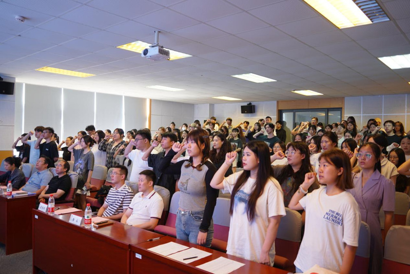随即,在邓倪婷同学的领誓下,全体新生慷慨激昂地进行了入学宣誓,洪亮整齐的宣誓声将典礼推向了高潮。
