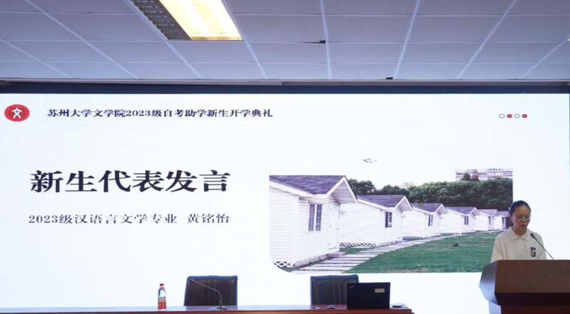 随后,由黄铭怡同学作为新生代表发言,她对今后的大学生活提出了以下展望:树立正确的人生目标,培养良好的学习及生活习惯,踔厉奋发,笃行不怠,与同学们一同展望美好的未来。