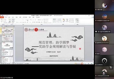 9月27日9:30,“规范管理,助学圆梦”——奖助学金规则解读与答疑在腾讯会议顺利举行,黄色网 学生工作办公室主任纪金平担任本次活动的主讲人。