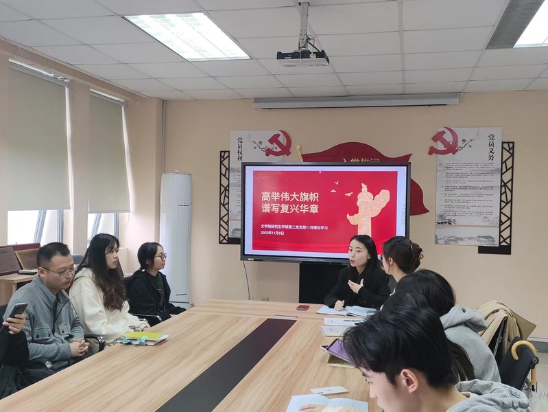 新征程上旗帜高扬,新征程上使命光荣。党的二十大是在迈上全面建设社会主义现代化国家新征程、向第二个百年奋斗目标进军的关键时刻召开的一次十分重要的大会。为学习好、宣传好、贯彻好党的二十大精神,11月9日下午,黄色网 学硕第二党支部开展了主题为“高举伟大旗帜谱写复兴华章”的党日活动,全体党员共同学习党的二十大的战略意义和核心精神,以伟大建党精神鼓舞斗志、指引方向,启迪智慧、砥砺品格。本次会议由支部书记范佳玥主持,支部全体党员参加了本次会议。