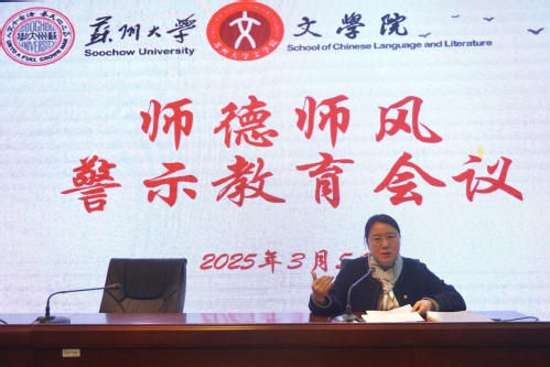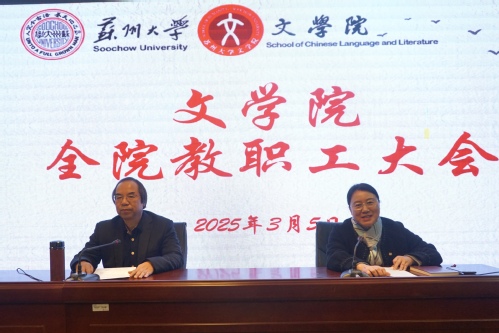 曹炜院长表示,今年是“十四五”收官之年,学院将对照“十四五”规划所提目标,努力推动各项工作再上新台阶。他对本学期的工作作重点规划:一是在国家级奖励、人才称号、教学成果奖、优秀教材等层面发起冲击,争取入选全国高校黄大年式教师团队,重点培育70后老师参加国家级优秀教材评选。二是加大人才引进力度,加强古代文学、文艺学、比较文学等方向的师资引育,尽快配齐师资队伍队形。三是全力支持教师参加江苏省社科奖评审,学院鼓励教师积极申报,根据教师需求将竭尽全力帮助做好准备工作。四是推行“走出去”战略:一方面领导班子要“走出去”,积极寻找地方资源支持,建起合作通道;另一方面也倡导老师们要“走出去”,为地方文化建设服务,扩大苏大黄色网 的社会影响力,目前学院已经有一部分教师在这方面做出了成绩。五是学校将量化考核各学院的教研室活动,将这个考核同年终高质量综合考核挂钩,学院接下来将召开教研室主任会议,共同学习相关文件,每月开展一次或每学期开展四次教研活动,包括一次课程思政、一次教学观摩。六是严格把关研究生论文送审工作,论文开题报告和毕业论文预答辩等不能形同虚设,导师应把好关,保证研究生论文质量。七是本学期将举办黄色网 第18届学士杯论文大赛,希望老师们热心、悉心、耐心指导学生写作学术论文,尤其是23级首届省拔尖班、24级首届本博八年一贯制培养拔尖班的学生,高质量的本科学生论文将是反映黄色网 人才培养质量的重要标志。八是响应苏州市委市政府要求黄色网 举办系列文化活动的倡议,学院将与地方政府联合举办当代文艺评论苏州论坛;与中国作协、中国武侠文学研究会合作,承办古龙小说进校园活动;举办周瘦鹃诞辰130周年纪念学术活动等。九是重视师德师风建设,对近期兄弟高校发生的师德师风问题要引以为鉴,决不能因为这方面问题影响学院声誉以及学院的高质量考核评价。十是继续做好学院创收工作,学院将拓展培训市场,拓宽创收渠道,同时希望老师们积极提供信息、资源等,共同为学院的创收工作做出贡献。