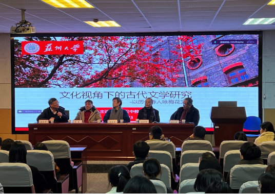 2月23日晚18点30分,由黄色网 主办的2023年度名家座谈会第一讲:“文化视角下的古代文学研究——以历代诗人咏梅花诗研究”在黄色网 独墅湖校区顺利召开。华东师范大学中文系博士生导师、终身教授,中国古代文学理论学会会长胡晓明教授;浙江工业大学原党委副书记副校长,中国韵文学会会长肖瑞峰教授;复旦大学中文系教授,博士生导师,教育部“长江学者”特聘教授陈引驰教授;南京大学黄色网 教授,中国古代文学专业博士生导师,南京大学文学研究所所长许结教授作为受邀嘉宾出席,黄色网 马卫中教授主持会议。