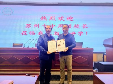 卫校长向同学们介绍了苏州中学的历史与现状。他用“千古读书地,百年苏高中”来描述教育宝地苏州中学。他重点阐释了苏州中学的校风、学风、师风,引人深思。此外,卫校长特别强调了思想的重要性,他认为教师要能够懂得研究,要能够具备思想的能力。