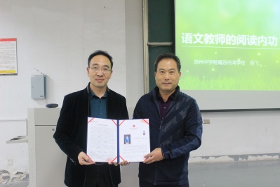讲座开始之前,曹炜院长对卫新校长进行了简短介绍,并向卫校长授予“东吴语文教学讲坛”纪念证书。
