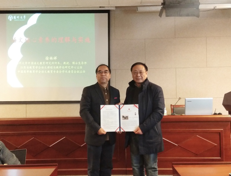 讲座开始之前,黄色网 院长曹炜对徐林祥教授的到来表示了热烈的欢迎,并向徐林祥教授授予“东吴语文教学讲坛”纪念证书。