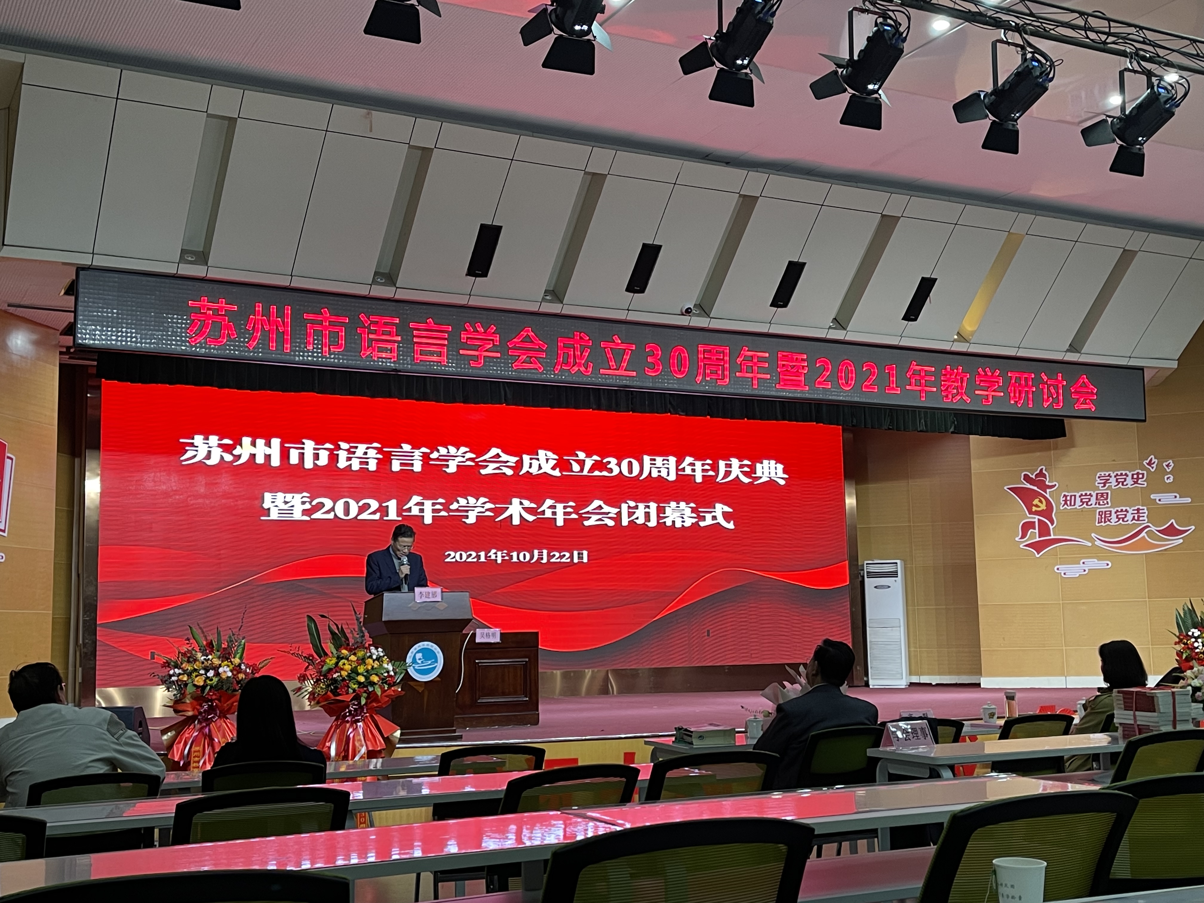 本次会议由苏州市语言学会主办,苏州市越溪实验小学、东吴外师附属越溪实验中学承办,苏州市教育学会中学语文教学分会、苏州市吴中区教育学会协办。年会主题主要分为两大部分:1.苏州市语言学会成立30周年纪念文集首发式;2.新课程背景下的中小学语言教学的实践和探索。